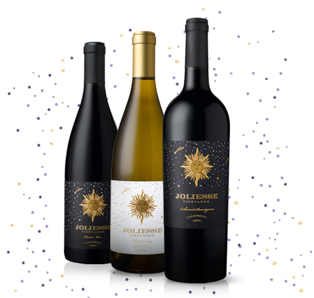 Joliesse (Pronounced jo’-lee’-ES’) comes from the French word for grace and loveliness, which is what we seek to create with each vintage. Sunshine guides us in all that we do; it is at the center of everything. The natural beauty of the world and cosmic energy all radiate from the sun. As the sun and the stars light our skies, so too does our label – with rays of the sun and stars that glow in the dark. We have harnessed the power of the California sunshine with Joliesse – each bottle captures the loveliness, magnificence, grace and splendor of each harvest.