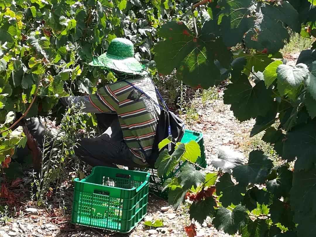 Winemaking The fermentation process with whole grape bunches is carried out in 6 different second used oak barrels of 500 liters, using natural yeast.